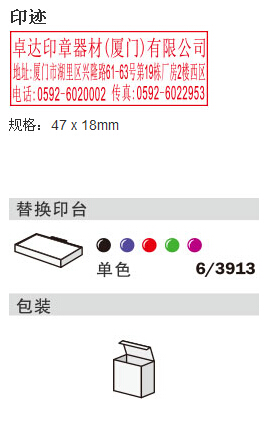 規(guī)格:58 x 22 mm 優(yōu)勢: 1、獨特的90°翻轉(zhuǎn)設(shè)計 2、印臺更換方便 3、含底蓋 攜帶方便 4、透明支架 定位精準 5、全球?qū)@Wo